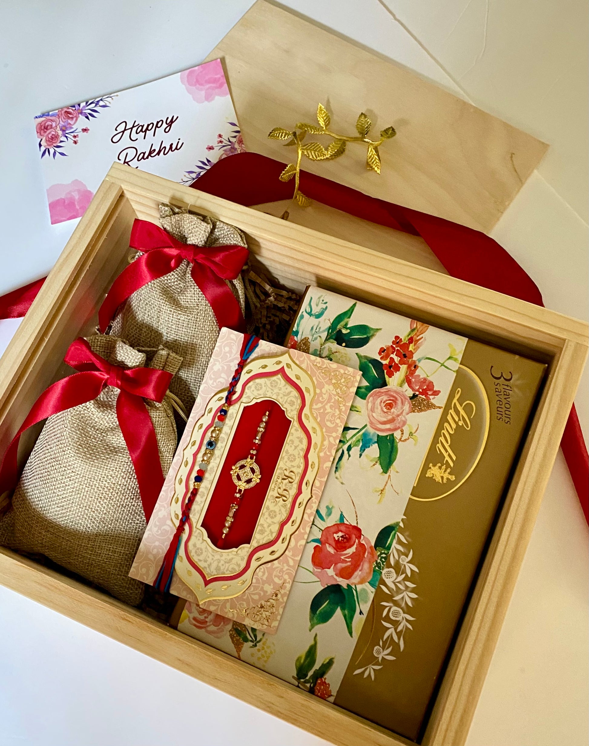 -A beautiful 'Happy Rakhri' card (If you'd like to provide a note, send a message or write it down in "Order Instructions" section when you put the hamper in cart)